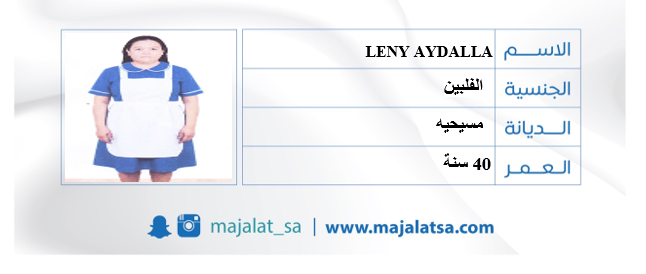T-422-لديها خبرة سنتين في السعودية, خبرة سنتين في الكويت الاسمSTEPHANIE MALSINالجنسيةالفلبينالديانةمسيحيهRead More